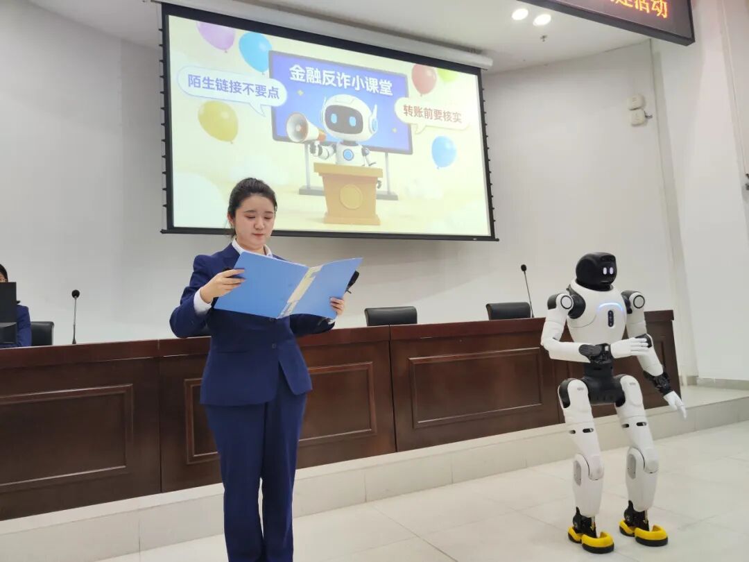 “如果有人要租借你的银行卡,说一天能赚500元,能答应吗?”面对主持人的提问,机器人立刻“警铃大作”:“危险危险!这绝对是诈骗套路”活动现场智能机器人通过搭载的AI数据库,以语音播报、情景问答等多样化形式,围绕校园贷、刷单诈骗、冒充客服退款、虚假投资理财等高发校园金融诈骗套路,逐一拆解诈骗手段、剖析典型案例将枯燥的金融知识转化为生动易懂的科普内容。