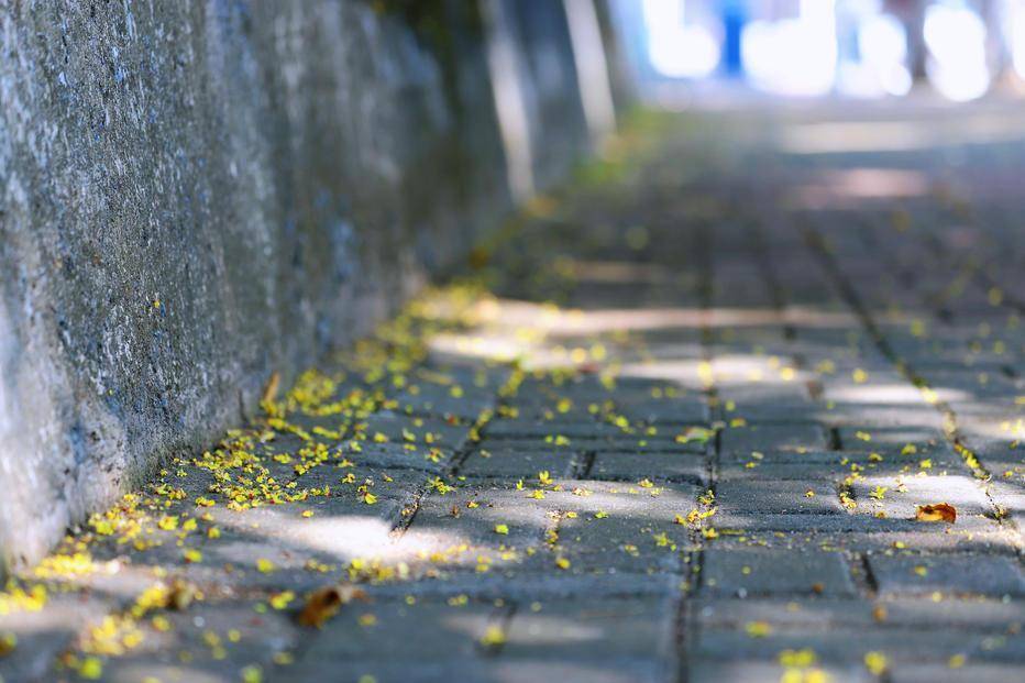 精致的花朵绽放在翠绿的枝头,一阵风吹过,细碎的花瓣缓缓零落,在树下铺出一条浪漫的花路,告诉大家,秋天来了。