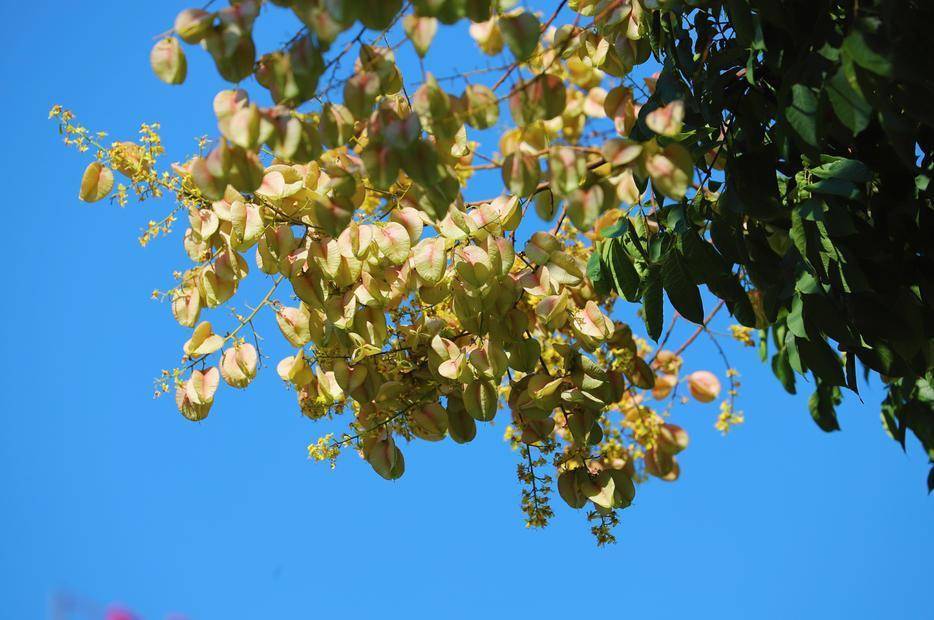 栾树,也名灯笼树,其蒴果犹如一个个灯笼挂上枝头,经过风雨洗礼,慢慢变粉再变成深浅不同的红色。阳光穿透层层叠叠的绿叶,斑驳陆离地洒在这些果实之上,仿佛为它们镶嵌上了一圈圈温暖而柔和的金辉,金黄、嫩青与火红相间,给九月的道路增添了一份独特的韵味。走每日配资平台,一起来双清街头,奔赴一场栾树之约,感受秋日里别样的浪漫吧!(邹小艳 曾玉娟)